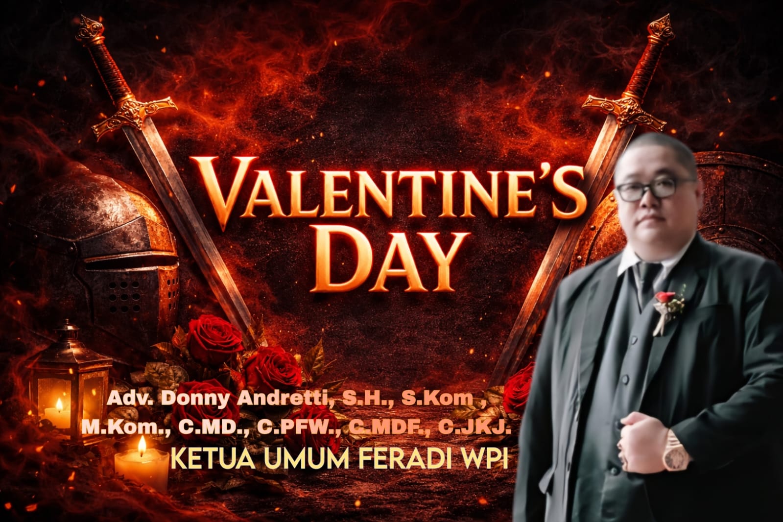 Melalui momentum Hari Valentine ini, Ketua Umum FERADI WPI Advokat Donny Andretti, S.H., S.Kom., M.Kom., C.MD., C.PFW., C.MDF., C.JKJ menyampaikan ucapan Selamat Hari Kasih Sayang kepada seluruh masyarakat, seraya mengajak semua pihak untuk memaknai kasih bukan sekadar simbol perayaan, melainkan sebagai panggilan menghadirkan kepedulian, kebaikan, serta kasih yang nyata dalam kehidupan sehari-hari.