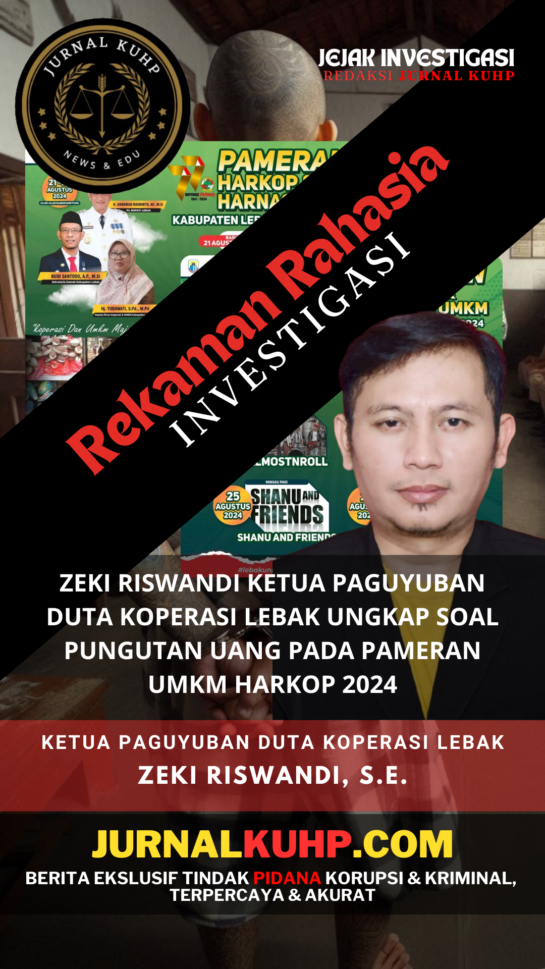 LEBAK, JURNALKUHP.COM #TIPIDKOR – Zeki Riswandi Selaku Ketua Paguyuban Duta Koperasi Kabupaten Lebak mengungkapkan pada Tim Awak Media Jurnal KUHP (23/10) bahwa ada pungutan uang oleh seorang Event Organizer (NH) sebesar Rp 3.5 Juta Rupiah untuk Sewa Stand tenda pada acara pameran UMKM di Hari Koperasi yang bertempat di Alun-alun Timur Kota Rangkasbitung Kabupaten Lebak pada Rabu, 21 – 25 Agustus 2024 yang lalu.